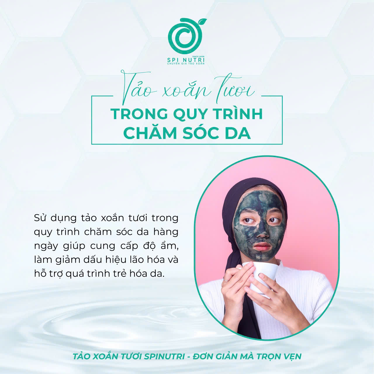 Tảo xoắn tươi (Spirulina) có nhiều lợi ích đối với làn da nhờ vào các dưỡng chất như vitamin, khoáng chất và chất chống oxy hóa Bạn có thể dễ dàng sử dụng tảo xoắn tươi để làm mặt nạ dưỡng da tại nhà.