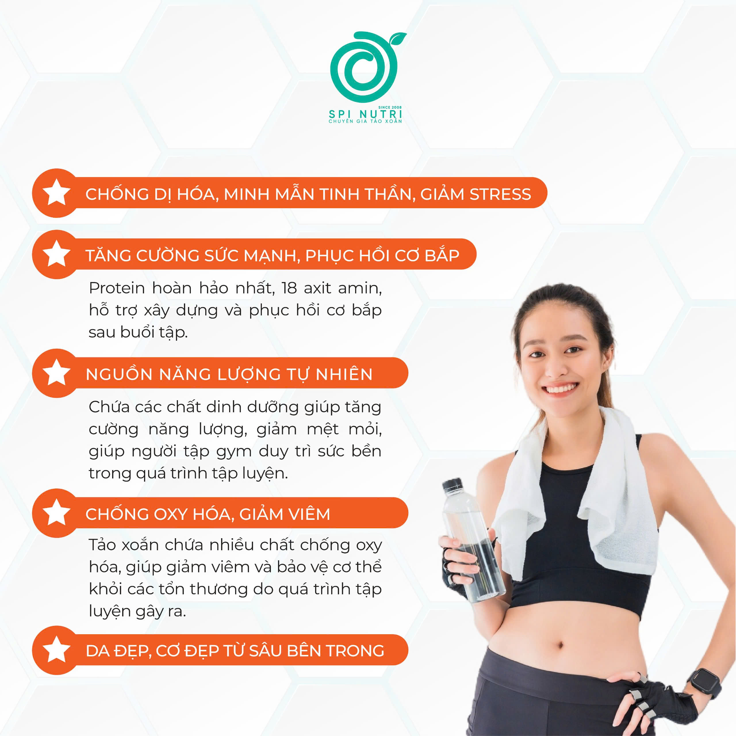 - Cung cấp năng lượng: Tảo xoắn chứa nhiều protein và vitamin B, giúp cơ thể duy trì năng lượng suốt cả ngày, đặc biệt là với những người có nhu cầu hoạt động thể chất cao.
