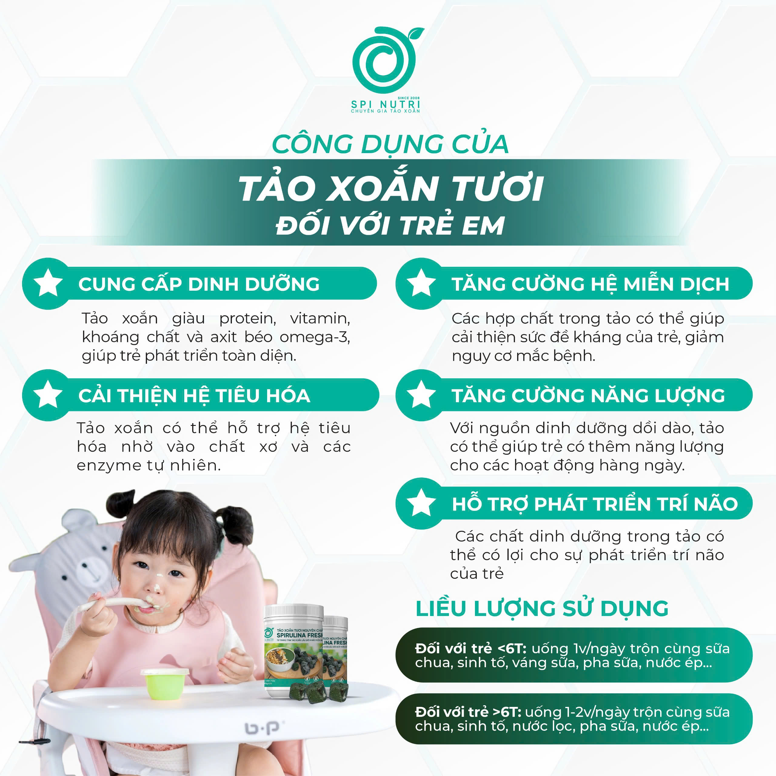 - Lợi ích của tảo xoắn tươi đối với trẻ em: