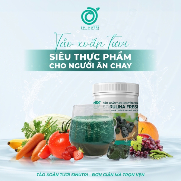 Tảo xoắn tươi là một siêu thực phẩm tuyệt vời dành cho người ăn chay nhờ vào hàm lượng protein cao, vitamin B12, khoáng chất và chất chống oxy hóa phong phú. Nó không chỉ giúp cung cấp đầy đủ dinh dưỡng mà còn hỗ trợ hệ miễn dịch, cải thiện sức khỏe tim mạch và duy trì vóc dáng khỏe mạnh. Với tính linh hoạt và dễ sử dụng, tảo xoắn tươi thực sự là một lựa chọn lý tưởng để bổ sung vào chế độ ăn chay hàng ngày. Hãy thử bổ sung tảo xoắn tươi vào khẩu phần ăn để cảm nhận những lợi ích tuyệt vời mà nó mang lại cho sức khỏe của bạn.