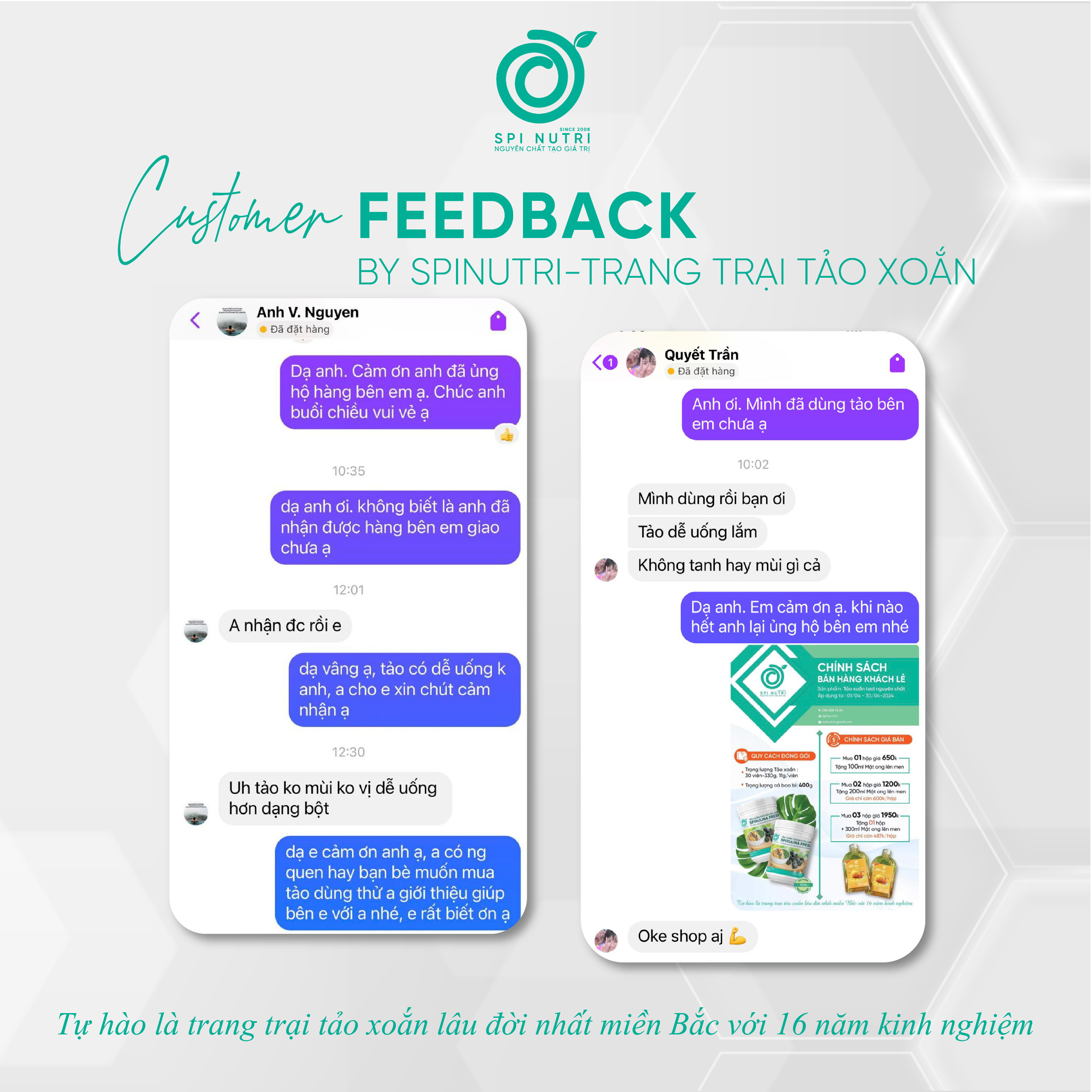 Hưởng trọn vẹn tinh túy thiên nhiên từ nguồn nước đá ong sạch sẽ nơi Xứ Đoài miền Bắc, Spinutri đứng vững là Trang Trại Tảo Xoắn lâu đời 16 năm kinh nghiệm, nơi kiên trì bảo tồn phương pháp thủ công để tạo ra tảo xoắn tươi chất lượng cao nhất.